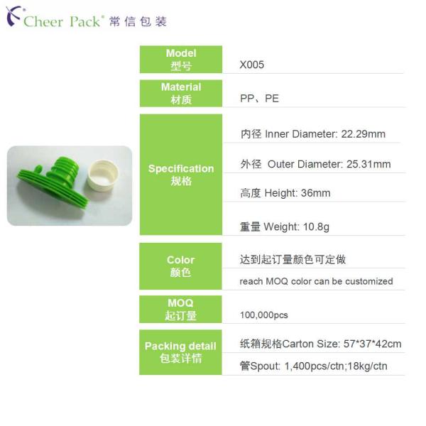 Diameter 22mm Blue Color Plastic Spou Cap Pe Material For Oxygen bag