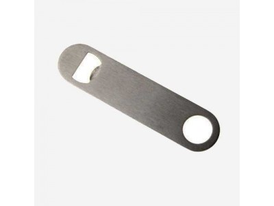 Stainless steel bar blade flat beer bottle opener, engraved logo, brushed metal