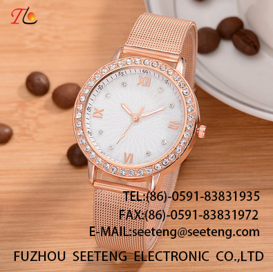 WHOLESALE ALLOY STRAP ALLOY ROUND CASE QUARTZ WATCHES WITH A LOTS DIAMOND