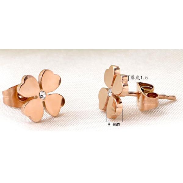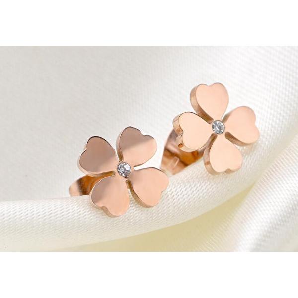 Four Leaf Flower Stainless Steel Earring Rose Gold Plated Stud for Girs Diamond Earring