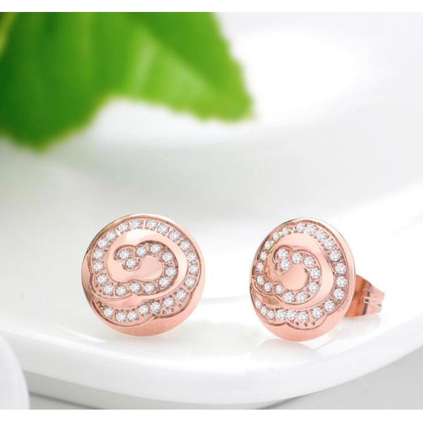 18K Rose Gold Stainless Steel Jewelry Flower Fashion Earrings Women Jewelry Round Shiny Ear Stud