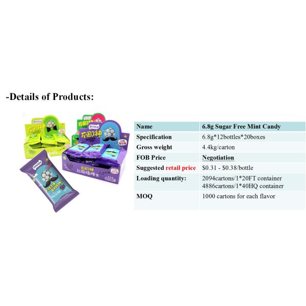 6.8g Blueberry flavor Sugar free mint candy / 3 flavors available / Small plastic bottle with bag