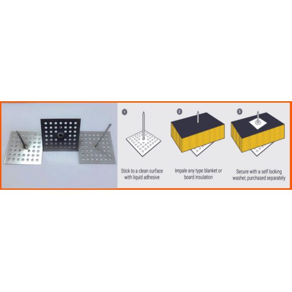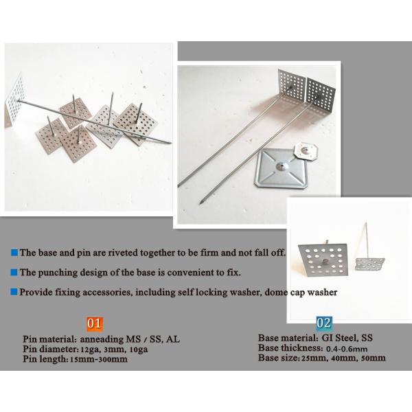 1.6mm,24mm x 24mm base perforated insulation pins are widely used for fixing a wide range of materials on ceiling or wall, including insulation boards, foam panels, sheets.
