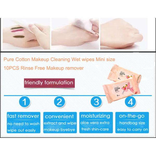 Pure Cotton Makeup Cleaning Wet wipes Mini size 10PCS Rinse Free Makeup remover
