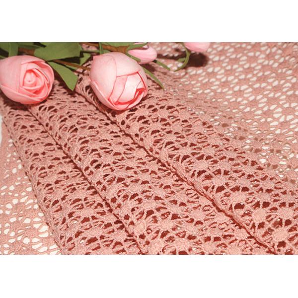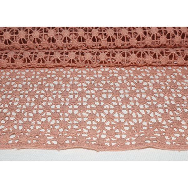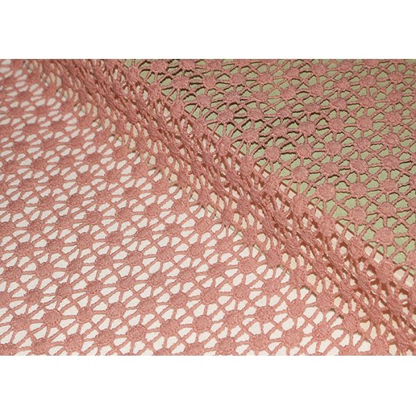 Polyester can be dyed any color with high color fastness. Simple lace pattern shows elegant, charming and vintage, suitable for dress gown fashion designers, apparel factory, textile accessories business trader etc. Chemical guipure lace fabrics are suitable for women dresses, skirt, home textile, curtain, bedding articles, apparel, handicraft, blouse, etc.