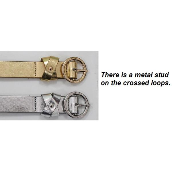 Metallic PU belt , Womens Fashion belts with metal stud on the crossed loops in 2.35cm width