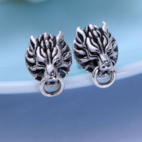 Buy 925 Black Silver Lion Unisex Design Stud Earrings(XH056786W) at wholesale prices
