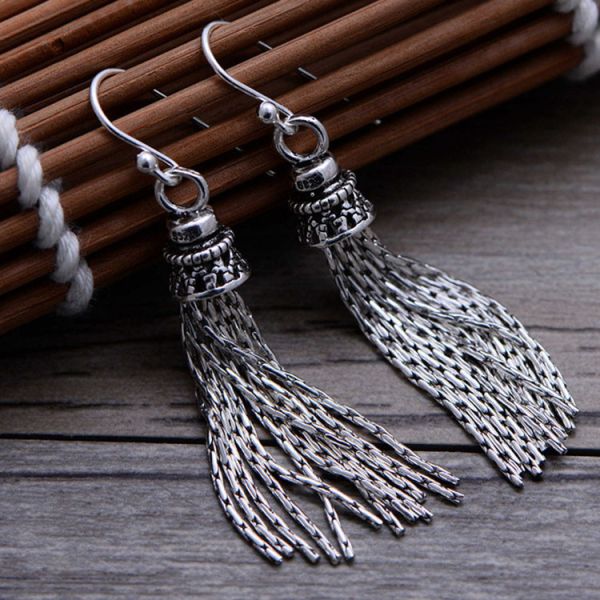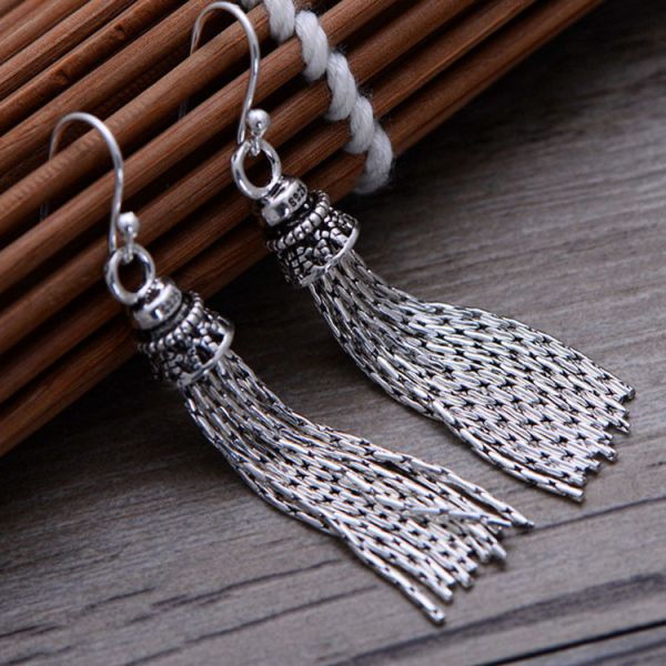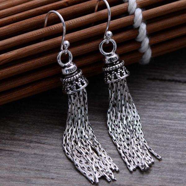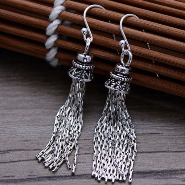 Trendy Retro Women Jewelry Thai 925 Silver Tassels Danlge Earrings(058026)