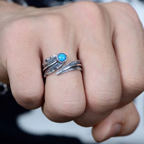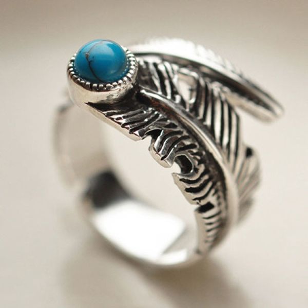 Buy Turquoise Adjustable Tribal Feather Ring 925 Sterling Silver Band Ring (024952) at wholesale prices