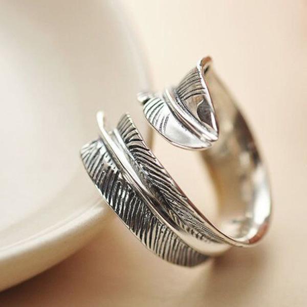 Buy 925 Silver Feather Ring Vintage Plume Adjustable Opening Band Ring (011231W) at wholesale prices