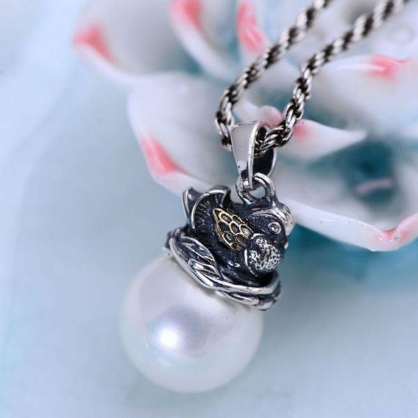 Buy Women Retro 925 Silver Shell Pearl Bird Pendant Necklace (XH056542W) at wholesale prices