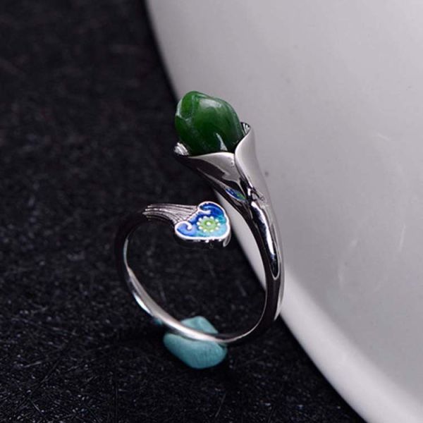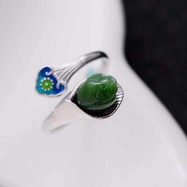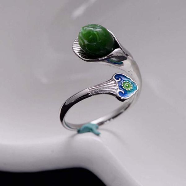 Buy 925 Sterling Silver Enamel Natural Jade Ring Open Adjustable Size (059850) at wholesale prices