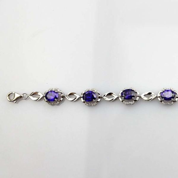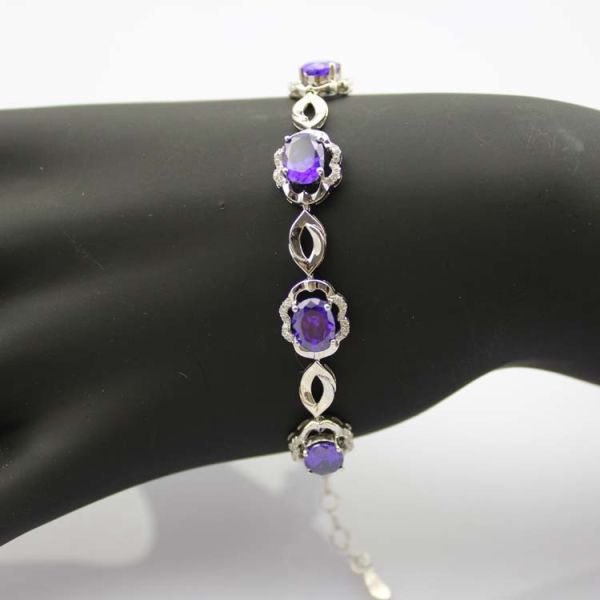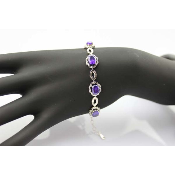 Buy 925 Silver 6x8mm Oval Created Amethyst and Clear Cz Diamonds Link Bracelet (H03) at wholesale prices