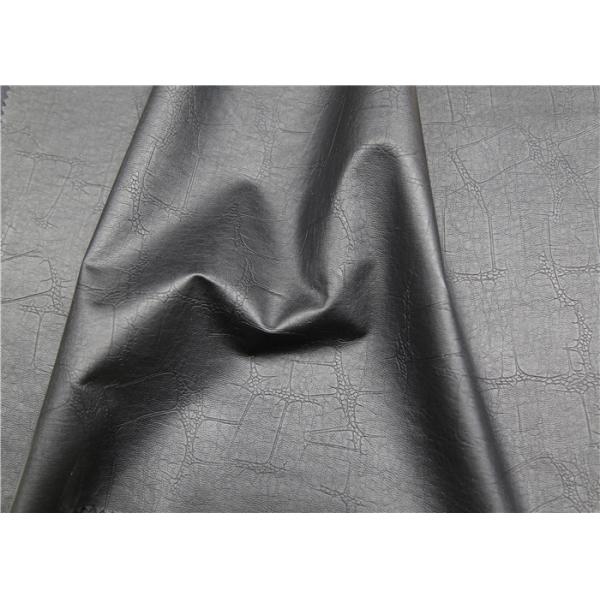 0.5mm black color embossed PU leather with 100% viscose backing fabric for garment , bags