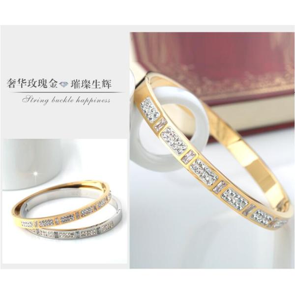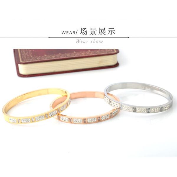 Fashion Girls Stainless Steel Diamond Pave Gold Bracelet for Girl Jewelry Diamond inlay Bangles