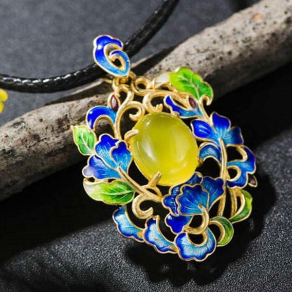 Buy Gold Plated Fashion Colorful Enamel Floral Yellow Agate Pendant Necklace(P6050601) at wholesale prices