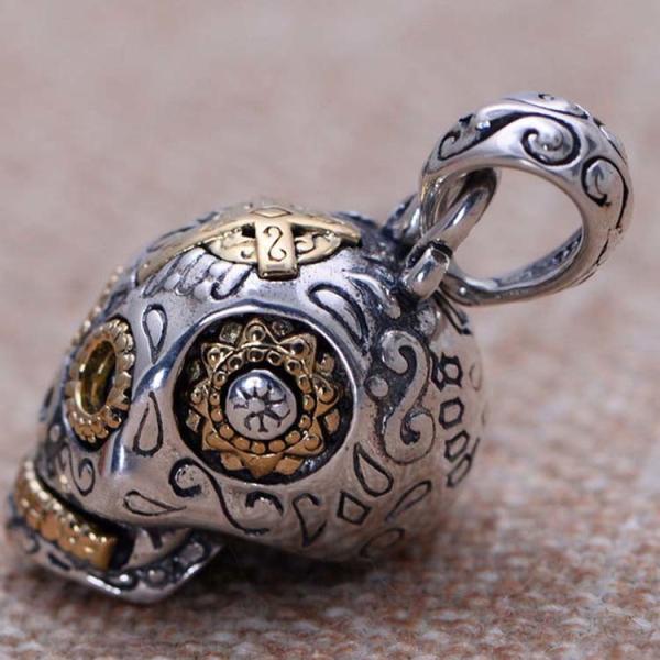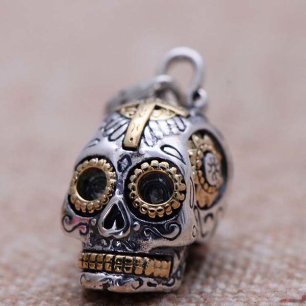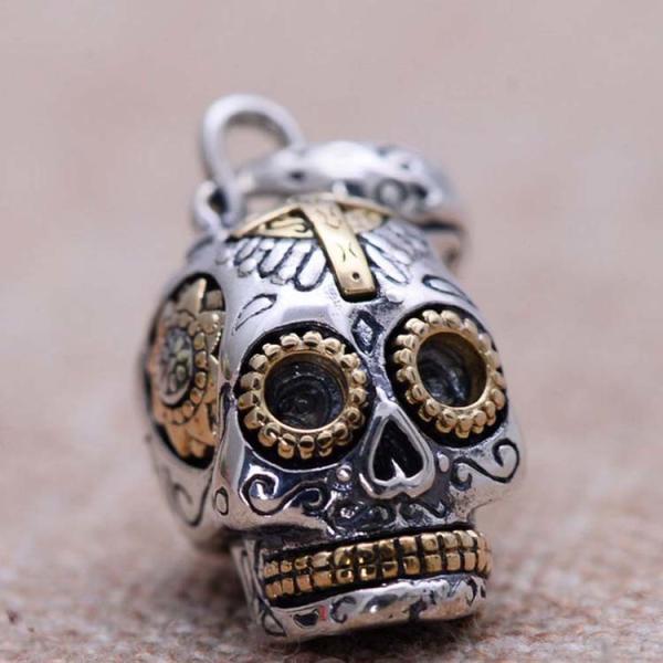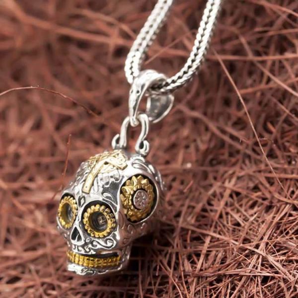 Men and Women Sterling Silver Necklace with Two Tone Skull Pendant(XH052035W)