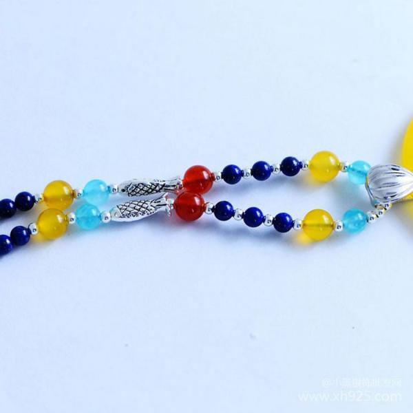 Buy Lapis Lazuli Gemstone Strand Necklace with Enamel 925 Silver Yellow Chalcedony Charm (XH057270W) at wholesale prices