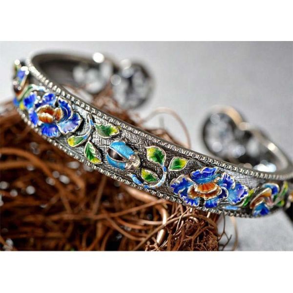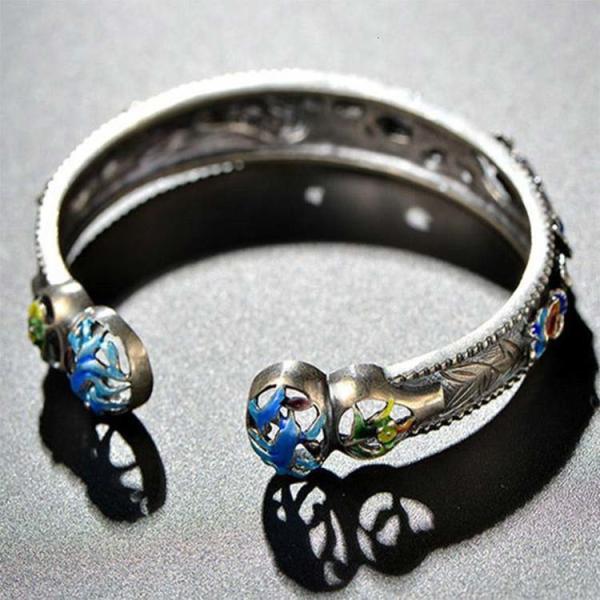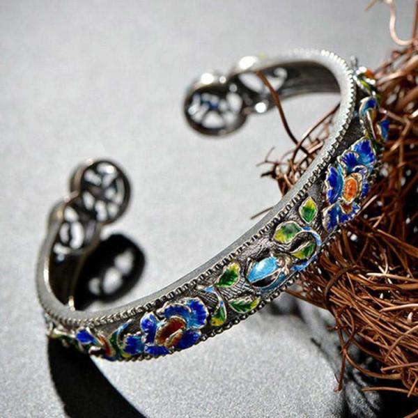 Buy 925 Silver Colorful Enamel Cuff Bracelet Vintage Jewelry for Women (B6050602) at wholesale prices