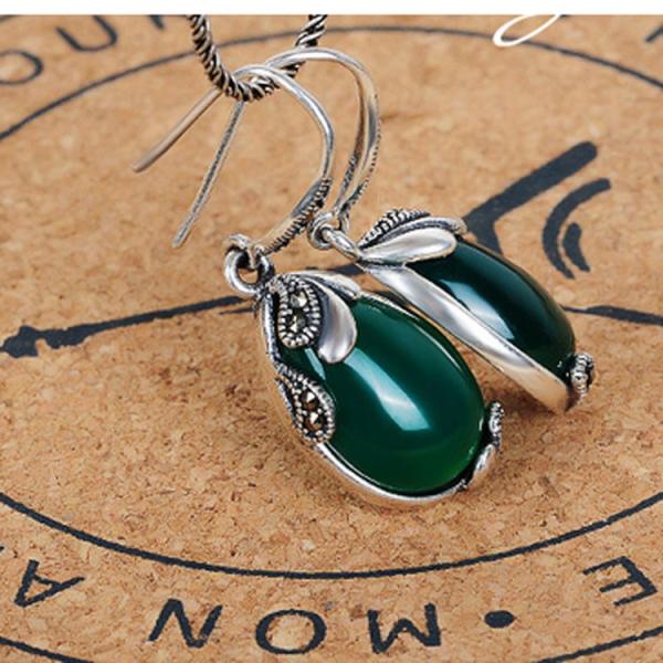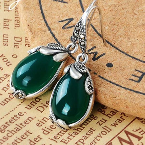Retro Jewelry Thailand Silver with Marcasite and Green Agate Earrings (JA1750GREEN)