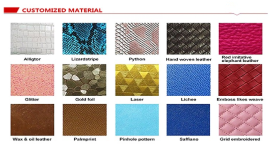B. Shell materials:Satin, knitted fabric ,PU,glitter,sparkle,sequin,zinc
