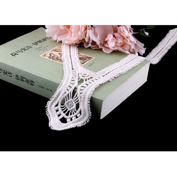 Water soluble guipure lace collar applique has a variety of suitable patterns, are suitable for women dresses, skirt, home textile, apparel, handicraft, art decorations, blouse, etc.