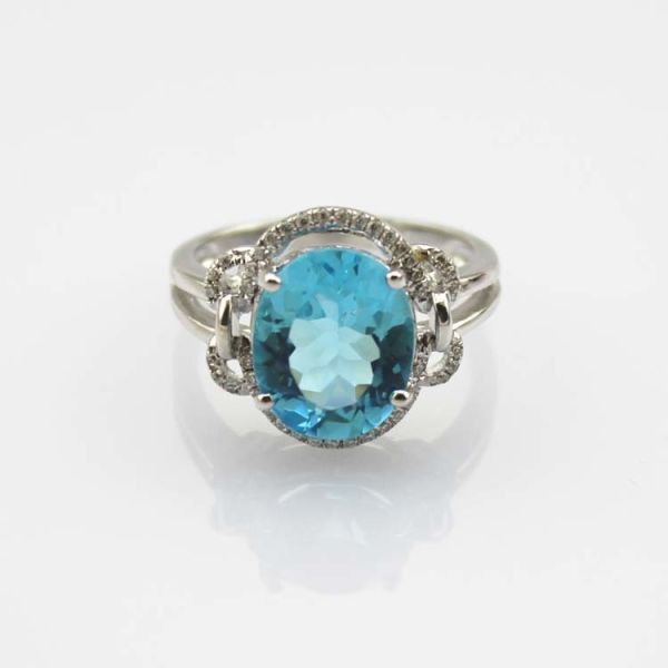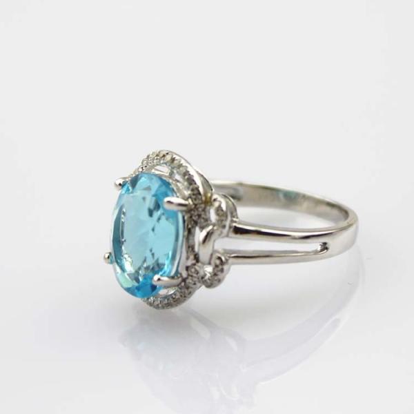 Buy 925 Silver Oval Blue Topaz Gemstone  Ring with CZ Diamons (R261) at wholesale prices