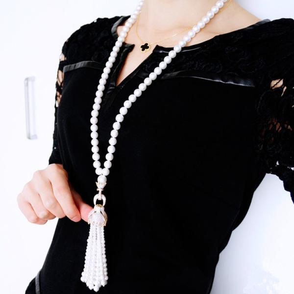 Buy Round Shell Pearl Necklace with Cubic Zirconia Tassel Charm Gold Plated (SN702142) at wholesale prices