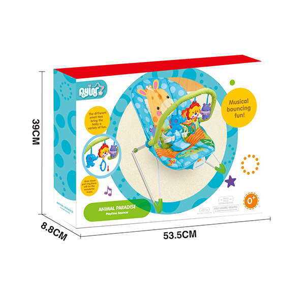 Item # | 8610 | (1) soft cushion seat, environmentally friendly material, safe for baby. (2) soft vibration can simulate the baby's environment in the mother's womb, giving the baby a sense of security, comforting the baby's mood, bringing safety and comfort to the baby, helping the baby to fall asleep quickly. (3) cute styling toy small hanging pieces, made of environmentally friendly materials, cute appearance promotes the baby's curiosity about new things, and plays a good role in promoting the baby's senses.One accessory with musical pull string. |