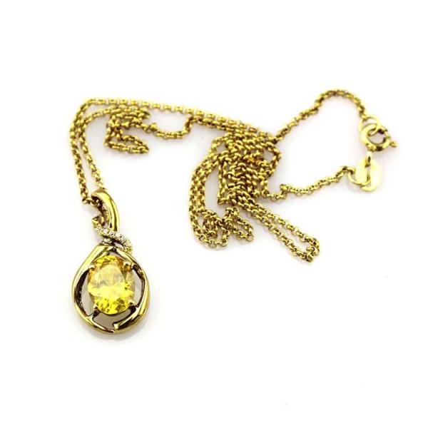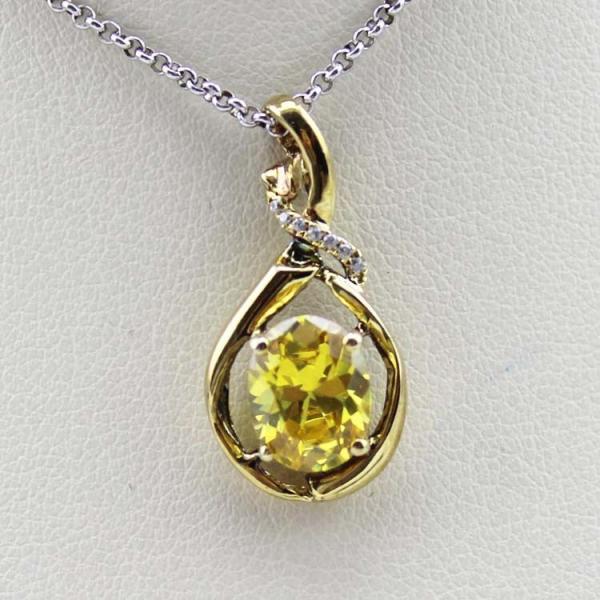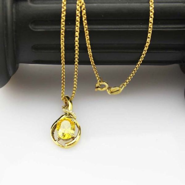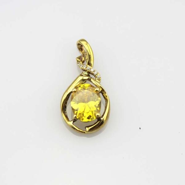 Buy Yellow Gold  Plated Silver Oval Yellow Citrine Cubic Zircon  Pendant (PSJ0410) at wholesale prices