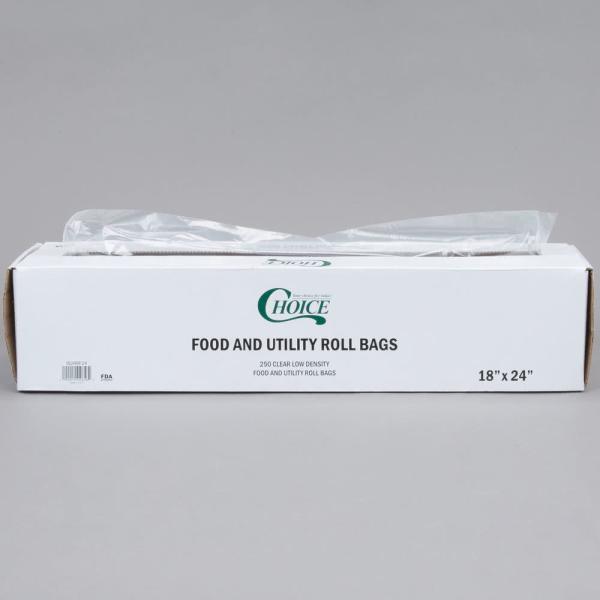 Plastic 18" x 24" Food Bag On Roll - 250/Box , HDPE Material Clear Colour