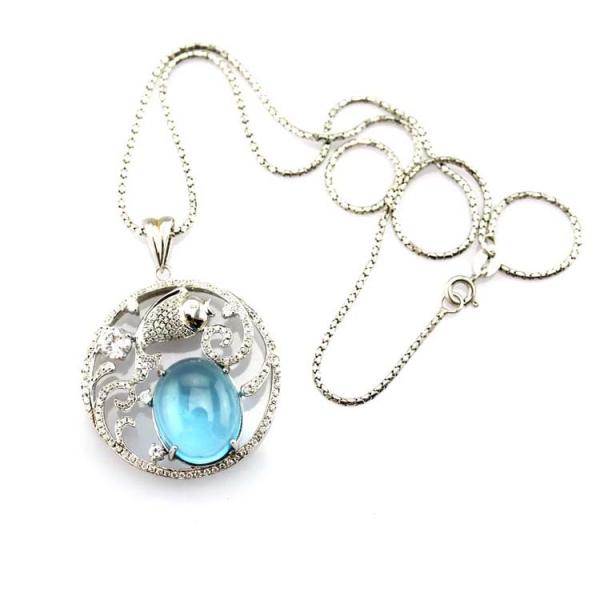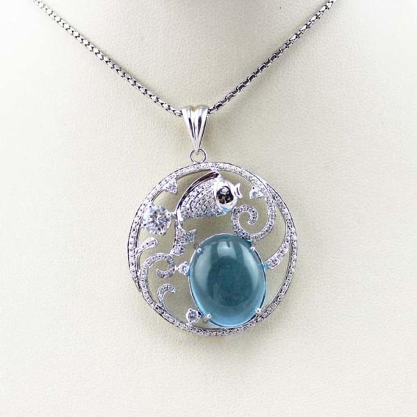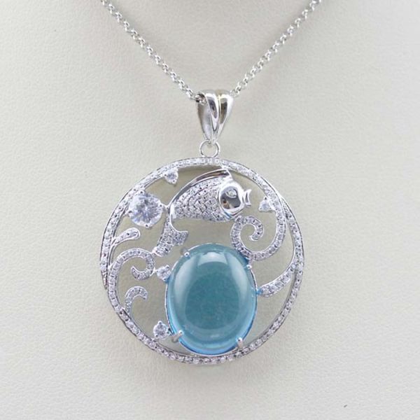 Buy Fashion Silver Jewelry Oval Dome Blue Topaz CZ Fish Charm Jewelry (PSJ0354) at wholesale prices
