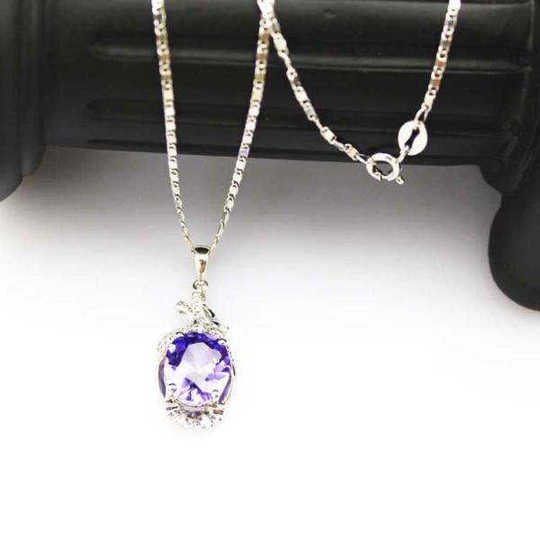 Buy Sterling Silver Jewelry 9x11mm Oval Amethyst Cubic Zircoina Pneant (PSJ0416) at wholesale prices