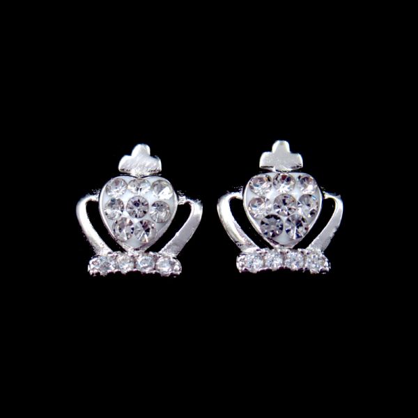 Silver 925 Platinum Jewellery Earrings Elegant Imperial Crown Shape
