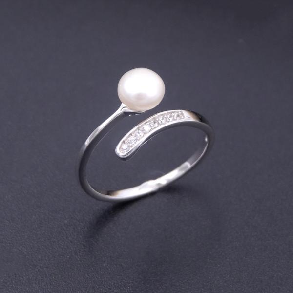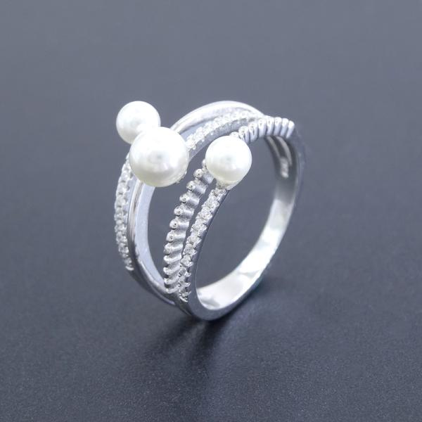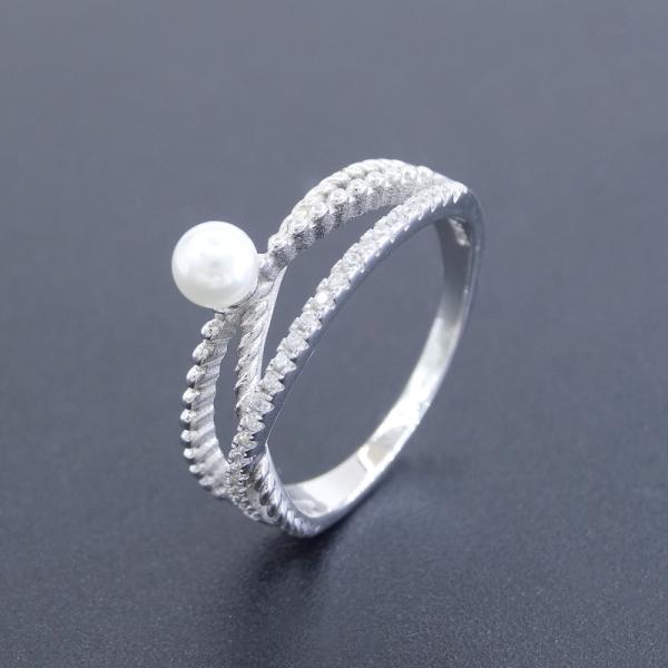 Pentagram Flower 925 Silver Pearl Ring Latest Design Platinum Jewellery For Girls