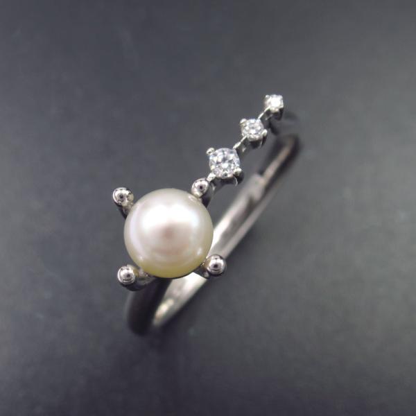 Two Semicircle Pearl And Rhinestone Fine Jewelry Pure 925 Silver Rings