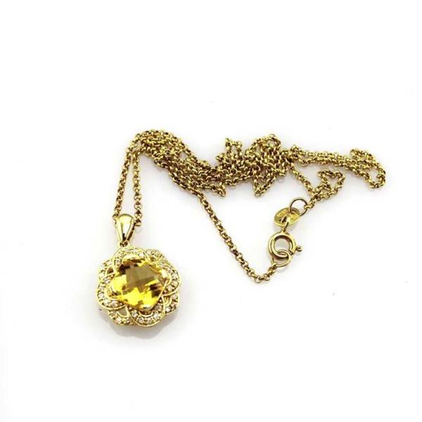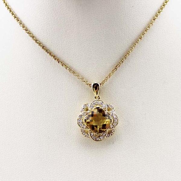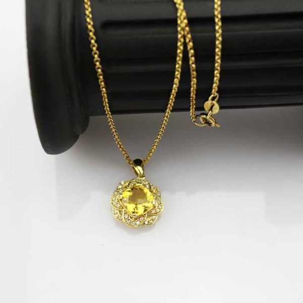 Buy 18k Yellow Gold Plated 925 Silver 8mm Round Champagne Citrine CZ Flower Style Pendant Necklace (P09) at wholesale prices