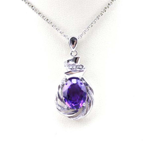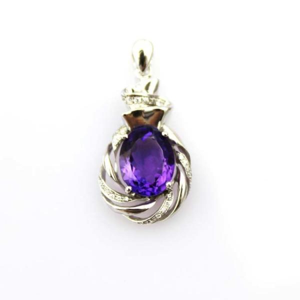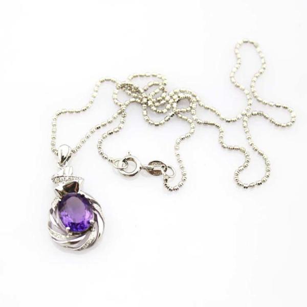 Buy Sterling Silver Chain Necklace with  8x10mm Oval Amethyst Cubic Zircon Pendant (P45) at wholesale prices