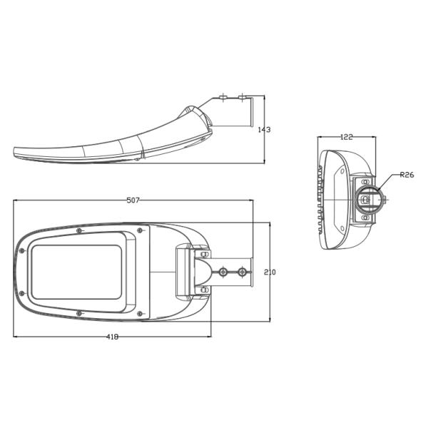 30w 50w 80w 100w 120w 180w 200w Street Light Housing Die Casting Aluminium Tempered Glass