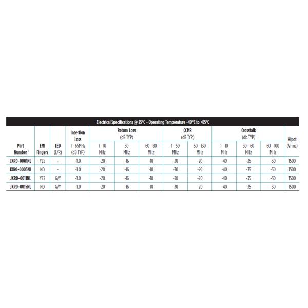 100 Base-TX RJ45 1X1 Tab-Down 8 pin Integrated Magnetics