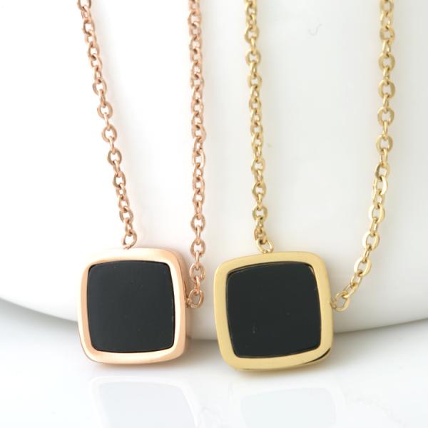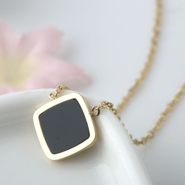 Black shell necklace, Stainless Steel Jewelry, Rhombus Shape Necklace women jeweller