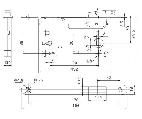 Name: Magnetic Mortise Lock Body with Magnetic Latch Cylinder hole