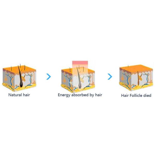 808nm diode laser machine is particularly effective to hair follicle melanocytes without injury surrounding tissue. The laser light can be absorbed by hair shaft and hair follicle in the melanin, and converted into heat, thus increasing the hair follicle temperature. When the temperature raises high enough to irreversibly damage the hair follicle structure, which disappear after a period of natural physiological processes of hair follicle and thus achieve the purpose of permanent hair removal. The sweeping In-motion delivery technique keeps the laser in constant motion ensuring full coverage.