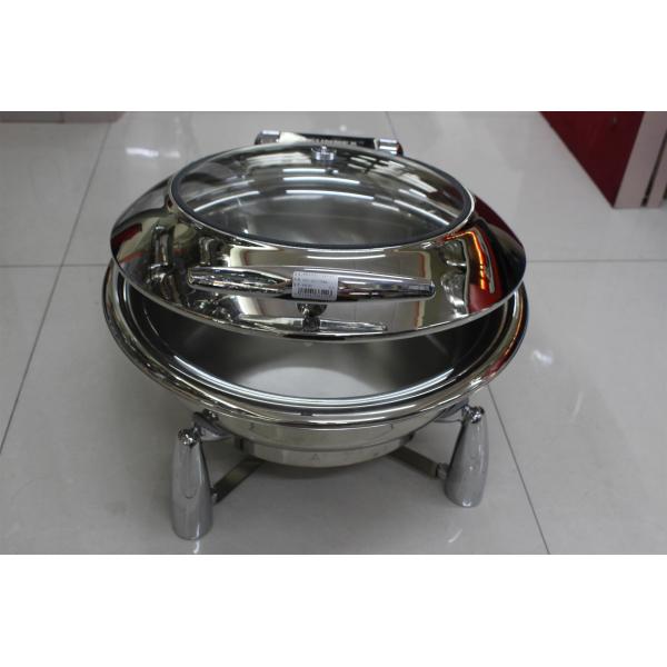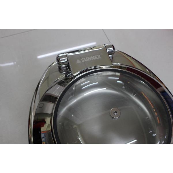 Sunnex Hydraulic Round Chafing Dish with Glass Window Mechanical Hinge Lid Dia.36cm Food Pan 6.8Ltr