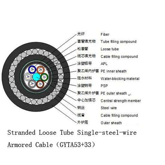 Stranded Loose Tube Single-steel-wire Armored GYTA53+33 Outdoor Fiber Cable