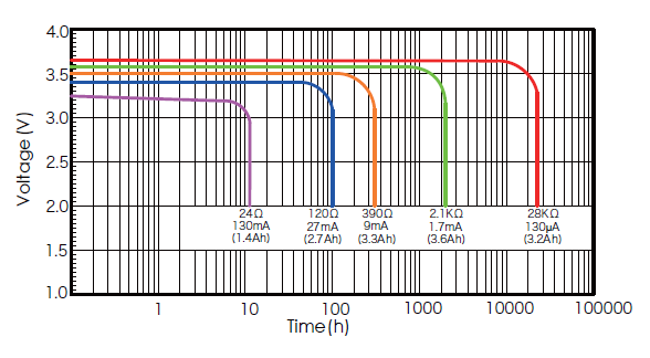 We provide the rated voltage is 3.6V, the working voltage varies with the load, generally between 3.3V ~ 3.6V