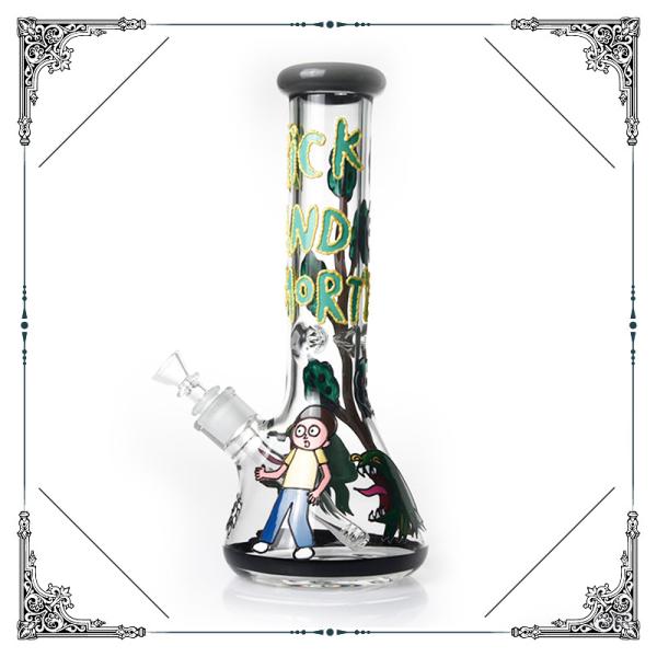 7MM Glass Smoking Water Pipes Hand Drawing Rick And Morty On Glass Hookah Bongs