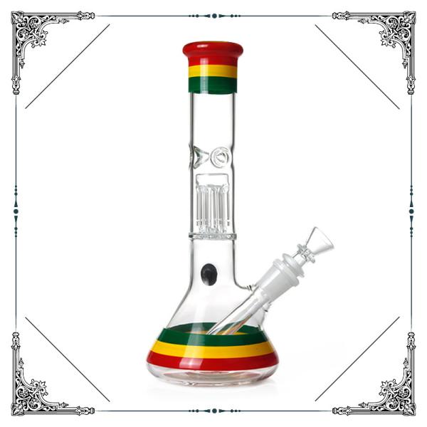 Rasta Color Glass Beaker Bong With Six Arms Percolator Bongs Smoking Water Pipes Glass Hookah