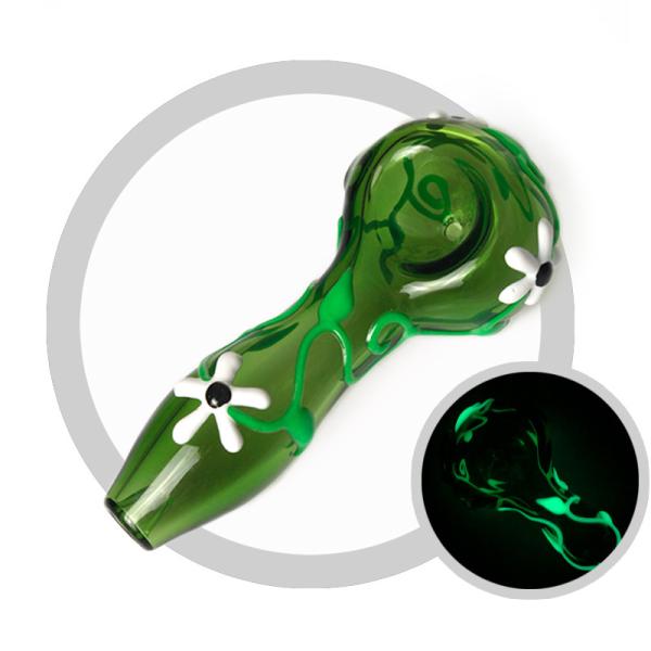 Green Glass Pipe With Luminous Flower Design Glass Hand Tobacco Pipe For Smoking