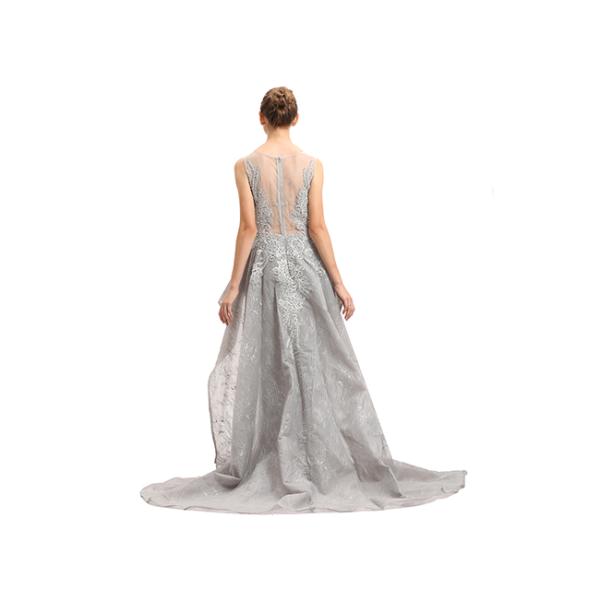 Floor Length O Neck Prom Party Dress Grey Beading Muslim Evening Dress